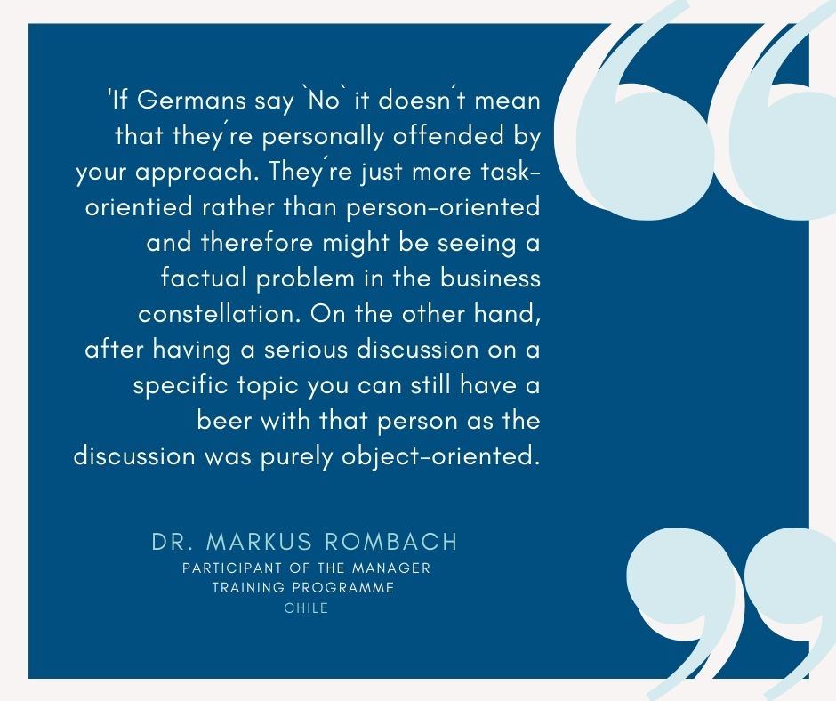 Under the motto “Fit for Partnership with Germany” the participants acquire management skills, gain insights into German business practices and establish contact with German enterprises, mainly medium-sized firms. The programme is aimed at managers and future managers, and at upper and middle management levels of Chilean enterprises and is generally open to all industries.