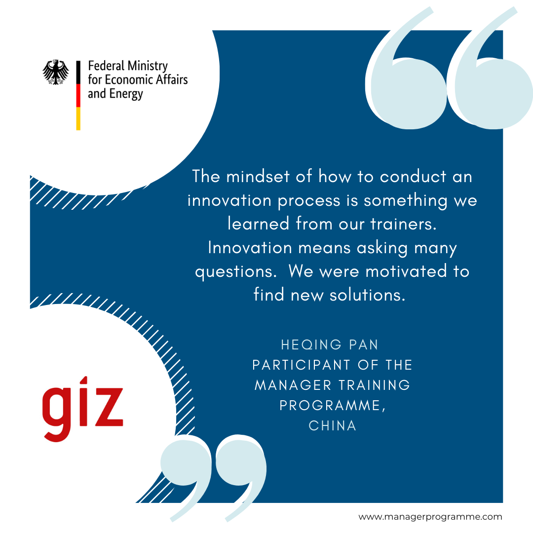 Since 2007, China has been a Manager Training Programme partner country. A corresponding government agreement exists between the Federal Ministry for Economic Affairs and Climate Action (BMWK) and the Ministry of Industry and Information Technology. So far, 746 entrepreneurs from China have participated in the programme.