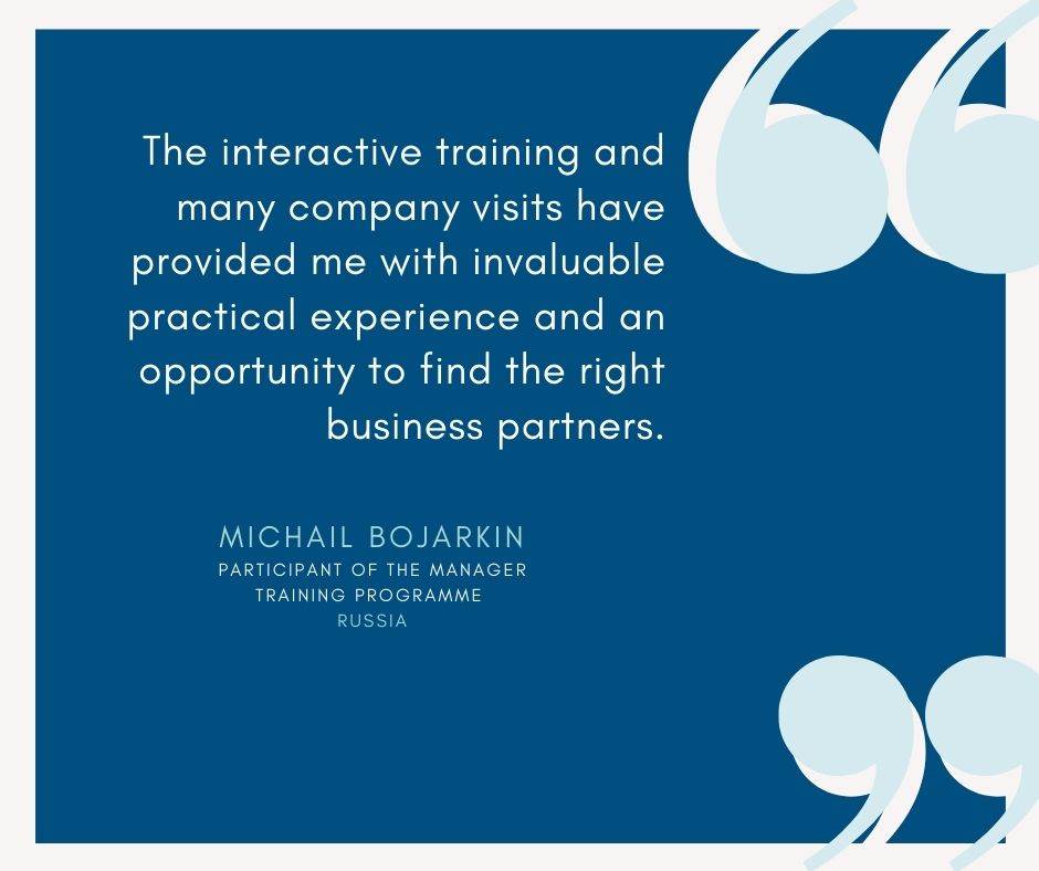 Since 1998, Russia has been a Manager Training Programme partner country. A corresponding government agreement exists between the Federal Ministry for Economic Affairs and Climate Action (BMWK) and the Ministry of Economic Development of the Russian Federation. So far, 6205 entrepreneurs from Russia have participated in the programme.