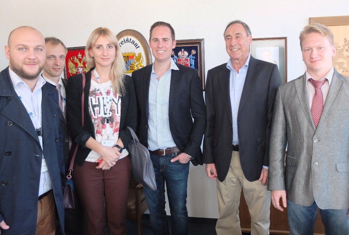The company is very well versed in doing business with Russia. For five years now it has held a stake in Signal Telecom in Moscow and employs 80 Russian workers in the parking systems area at Parktime, a joint subsidiary. So Klaus Gindl was easily able to fulfil his guests’ requests for more information about cooperation with Russia. He talked very openly about the problems he felt the company faced in Russia. These included differences in hierarchical structure and the decision-making process. Customs regulations and bookkeeping have also sometimes presented unexpected hurdles. After years of collaboration, the company is now better able to adjust. “Anyone who goes to Russia needs to be aware that it is not a place to make a quick buck. Long-term investment is required”, Klaus Gindl emphasises. He also pointed out that a functioning network and good partnerships were essential. His guests were in perfect agreement: “A good relationship helps to improve and develop company business in Germany and abroad,” summed up Elena Grytsiv.