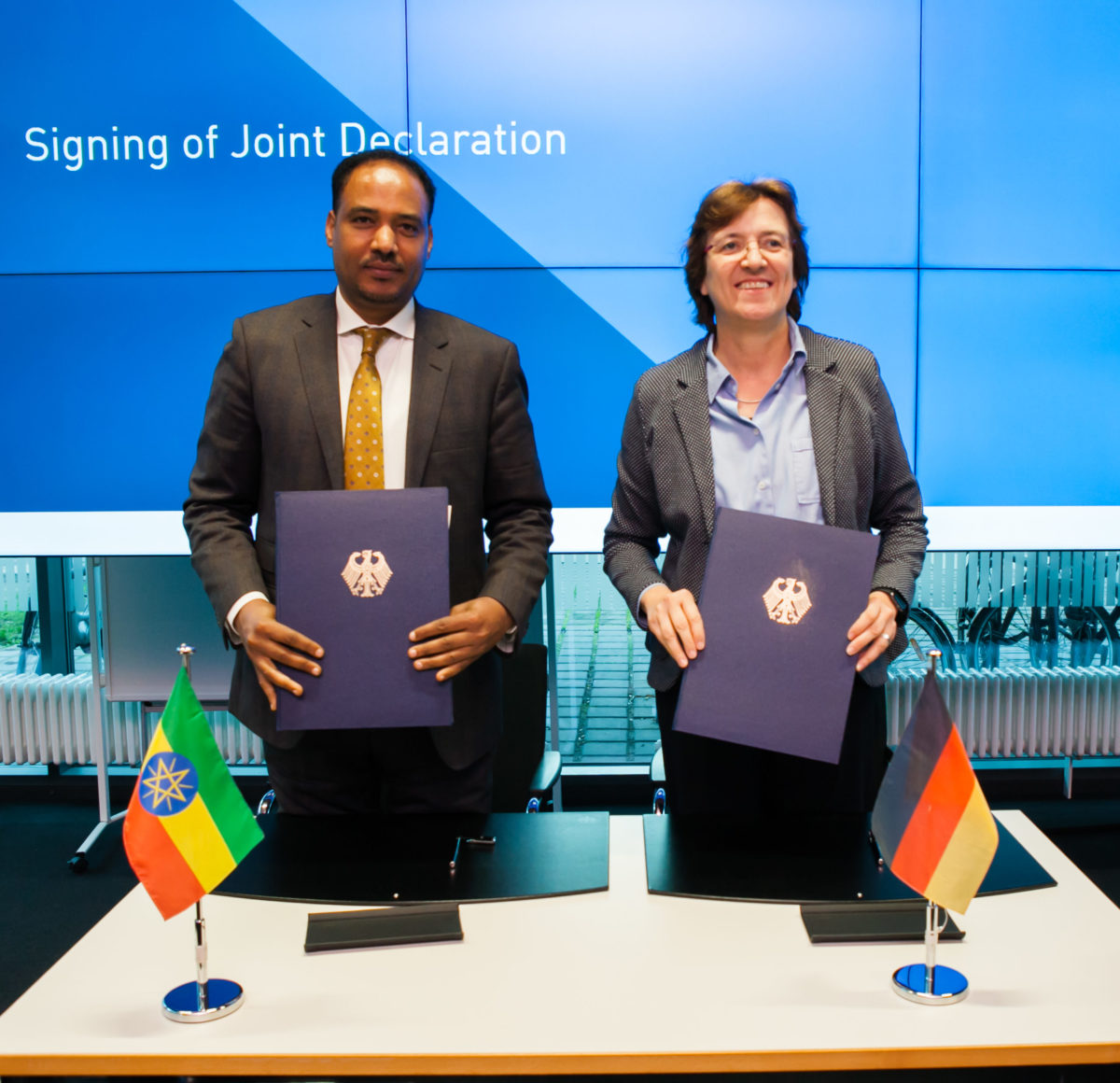 Mesganu Arga Moach und Dr. Dorothea Schütz bei der Unterzeichnung in Berlin.