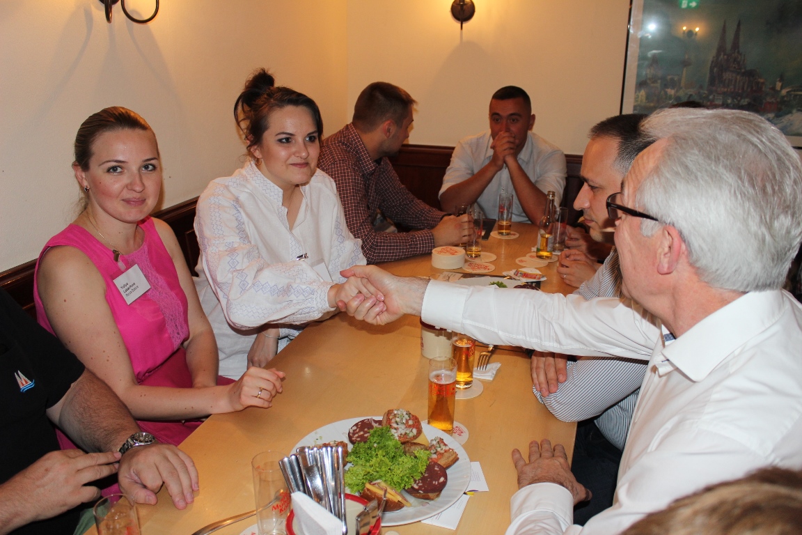 Kooperationsbörsen und Matchmaking Events sind ein fester Bestandteil des MP. So trafen auch die Teilnehmer aus der Ukraine am 30. Juni 2016 bei einem Netzwerk-Dinner auf den Kölner Wirtschaftsclub. In der traditionellen Brauerei „zur Malzmühle“ lernten die ukrainischen Führungskräfte zehn Unternehmensvertreter des Wirtschaftsclubs und nicht zuletzt die kölsche Brauereikultur kennen. Zu kühlem Kölsch und leckeren „kölschen Tapas“ tauschten sie sich mit deutschen Unternehmern aus den Branchen Logistik, Food & Beverage, Gesundheitswirtschaft und dem Ingenieurwesen aus.