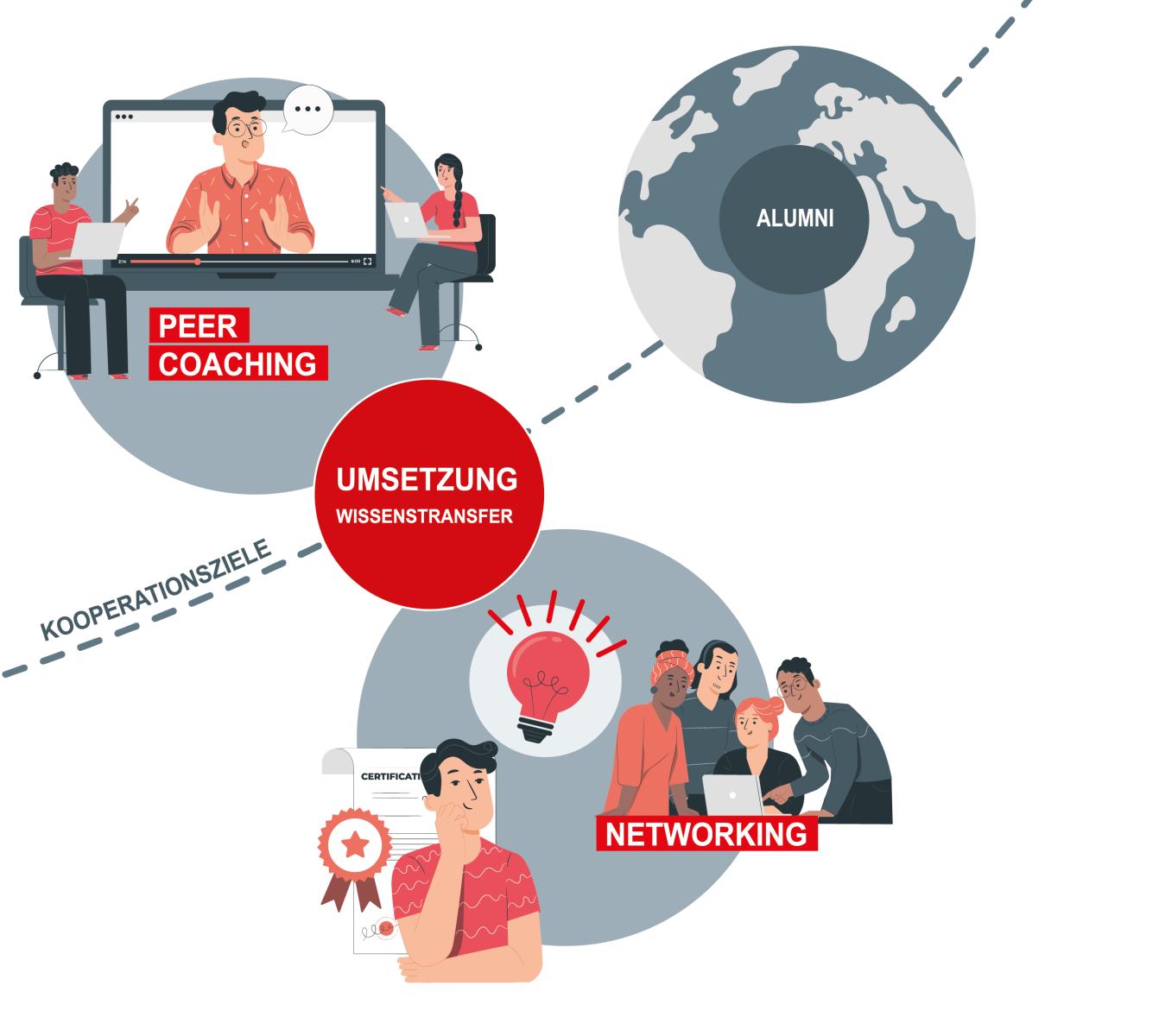 Während der sechsmonatigen Transferphase arbeiten die Teilnehmenden an der Umsetzung ihrer Kooperationsziele und initiieren Veränderungsprozesse im eigenen Unternehmen.