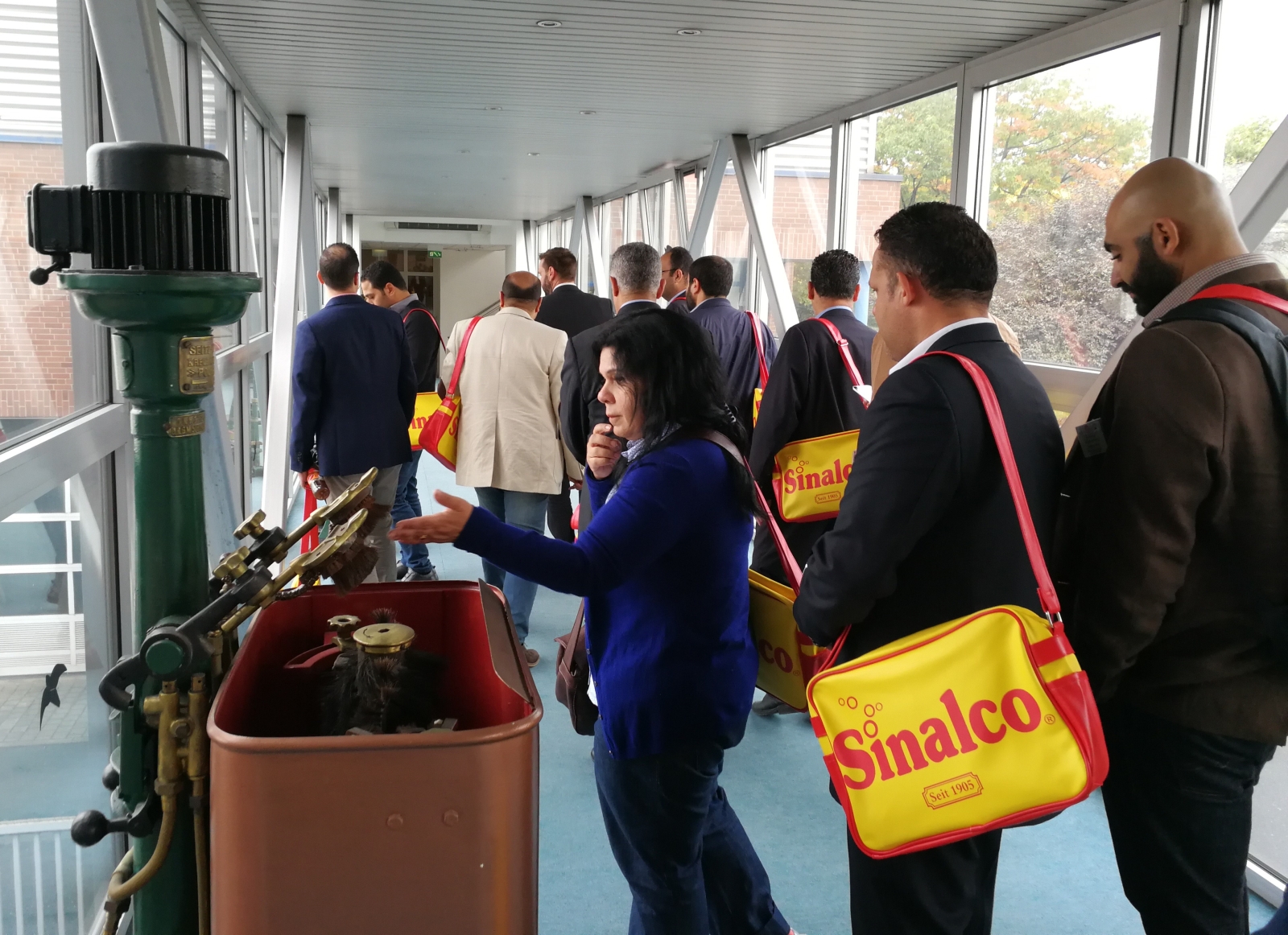 Die ägyptischen Führungskräfte schauten sich zunächst das Museum von Sinalco an, in dem die über 100-jährige Geschichte des Unternehmens mit zeitgenössischer Werbung und alten Produktionsanlagen dargestellt wird. Sehr überrascht waren sie, als der Geschäftsführer, Mongi Goundi, mit ihnen auf Arabisch angeregt über das Geschäftsmodell, die zukünftige Ausrichtung und strategische Entscheidungen des Unternehmens diskutierte. Anschließend machte Mario Mais, Marketingmanager von Sinalco, die Gäste mit weiteren Details zu der weltweiten Marketingstrategie und dem Geschäftsmodell des Unternehmens vertraut. Sinalco ist derzeit in über 50 Ländern aktiv. Zu den neu hinzugekommenen Ländern, in welchen die Sinalco-Getränke nun verkauft werden, gehören u.a. die MP-Partnerländer Kasachstan, Tunesien und Turkmenistan. Das Geschäft von Sinalco basiert auf einem Franchise-Modell: Lokale Hersteller produzieren und verkaufen die Getränke unter dem Markennamen Sinalco exklusiv in ihrem Land. Das Headquarter versorgt die Partner mit den notwenigen Rezepturen und Konzentraten. Die genaue Kenntnis des lokalen Marktes durch den Franchise-Nehmer ermöglicht die optimale Anpassung an die heimischen Präferenzen. Denn die finale Entscheidung, welche der ca. 300 Geschmacksrichtungen im jeweiligen Land angeboten werden, liegt beim lokalen Franchise-Nehmer.