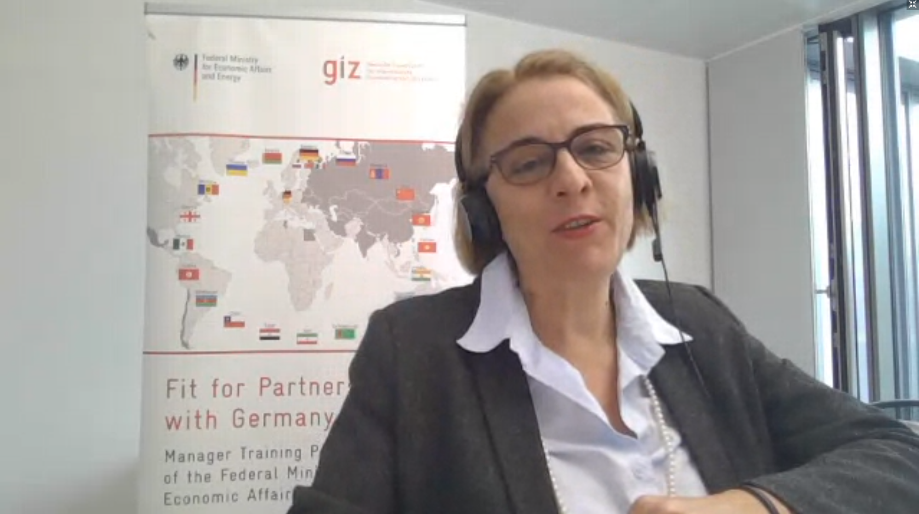 „Das Managerfortbildungsprogramm hat sich auch in der Pandemie als erfolgreiches und international anerkanntes Instrument der Außenwirtschaftsförderung bewährt. Es hat sich an die pandemische Situation und an die neuen Bedarfe der Partner angepasst und sich entsprechend weiterentwickelt“, sagte Claudia Dörr-Voß, Staatssekretärin im BMWi, zur Begrüßung der Gäste. „Die Zahlen belegen, dass das Programm virtuell gut angenommen wird. 2021 haben wir 51 Gruppen und insgesamt rund 1.000 Teilnehmer begrüßen dürfen“, so Dörr-Voß. Am zweitem Workshoptag wurden die Anwesenden von Dr. Kirsten Scholl, Leiterin der Abteilung Europapolitik im BMWi, begrüßt. Sie gab u.a. einen Überblick über die aktuelle wirtschaftliche Lage. „Die Zusammenarbeit zwischen Unternehmen ist der Schlüssel zur Bewältigung der anhaltenden Krise“, sagte Scholl und ergänzte: „BMWi und GIZ haben ein neues Konzept zur Fortbildung internationaler Führungskräfte entwickelt. Als Plattform für deutsche und ausländische Unternehmen hat das MP eine klare Zukunft.“