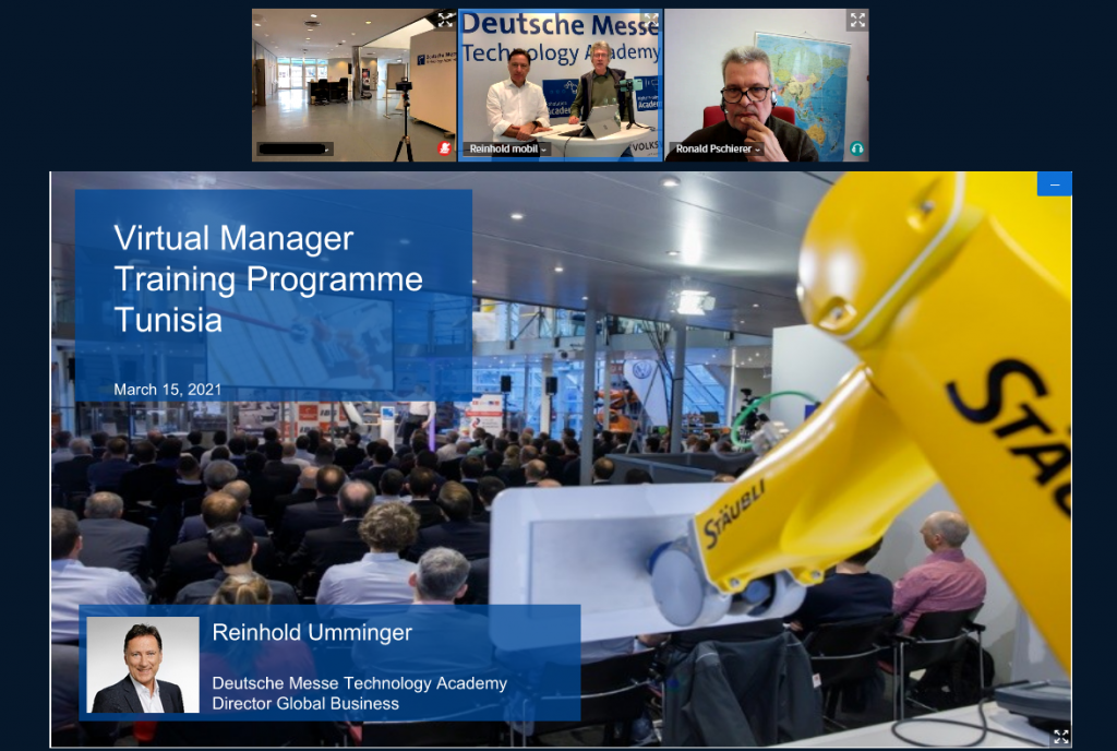 Die virtuell besuchten deutschen Unternehmen diskutierten mit den tunesischen Führungskräften zahlreiche praktische Managementfragen. „Vor dem Hintergrund unserer eigenen Internationalisierungsaktivitäten schätzen wir den Austausch mit den Unternehmerdelegationen des Managerfortbildungsprogramms. Die Fragen und die Chatkommentare seitens der tunesischen Gruppe spiegelten das ausgeprägte Interesse an unserem Geschäftsmodell wider“, sagte Reinhold Umminger, Director Global Business bei der Technology Academy GmbH aus Hannover, im Anschluss. Richard Trontsch, Manager Marketing Robotics Division bei der Yaskawa Europe GmbH, zeigte sich ebenfalls überzeugt vom Treffen mit den MP-Teilnehmern: „Es ist eine wertvolle Gelegenheit für unser Unternehmen, Kontakte zu internationalen Unternehmergruppen herzustellen und unsere Produkte und Strategien präsentieren zu können. Konkrete Wünsche und Anfragen im Nachgang zu diesen virtuellen Terminen zeigen ein großes Interesse an unseren Technologien.“